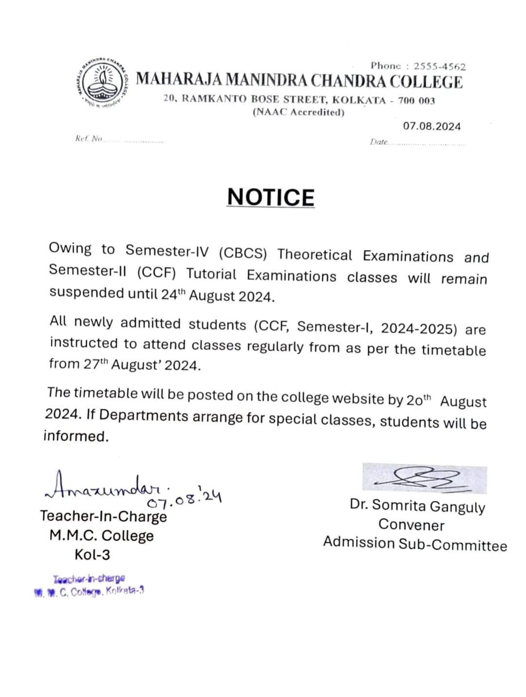 Maharaja Manindra Chandra College, located at the heart of the city of Kolkata , has established a separate identity of its own since its very inception, 1941, as a centre of higher education commited for imparting quality education to the students of the city and its suburbs. It is needless to say that presently our country is passing through a period of hardships and uncertainty and consequently, the parents and the guardians are too anxious about the future of their wards. Still, the reality always advises us to keep our hope alive. In the era of acute competition students have to prepare themselves to overcome the hurdles and achieve their desired goals.